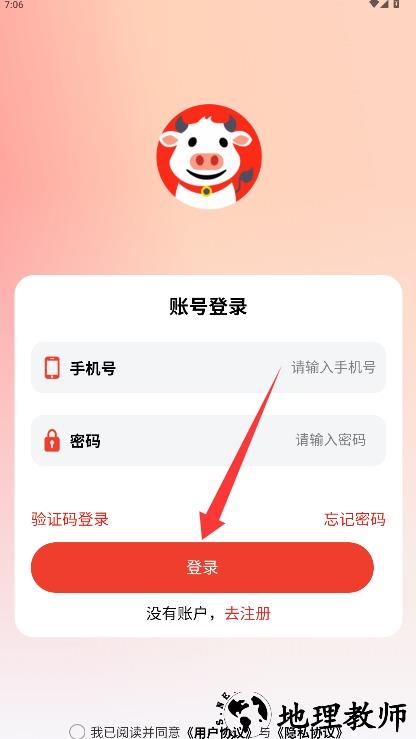 2、在登录页面输入手机号和登录密码,勾选同意隐私政策后点击登录进入应用。