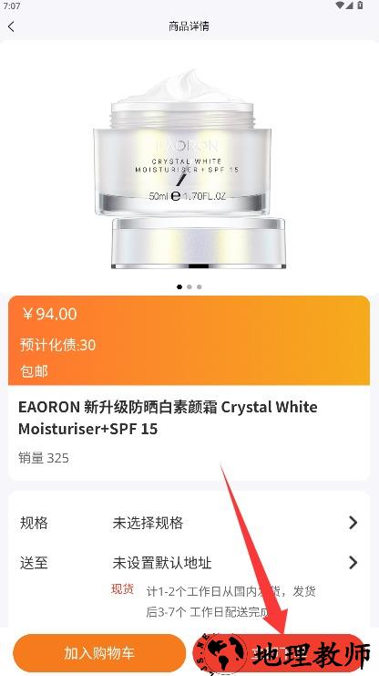 4、进入商品详细信息界面后,选择规格和收货地址后点击立即下单付款完成购买。