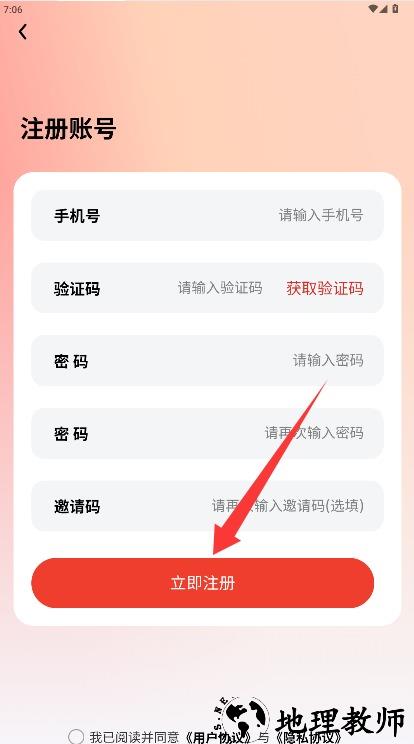1、输入手机号码和验证码并设置登录密码,勾选同意协议后点击立即注册即可。