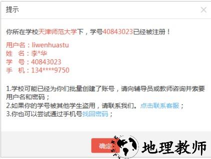 注:为不影响课程考核,需填写真实信息;若学号已注册,可能是学校统一注册,需咨询辅导员或教师索要账号密码,勿随意改学号注册;