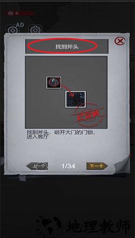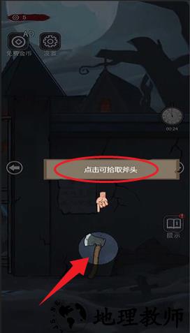 4、提示会告诉你游戏步骤,例如图中的“点击可拾取斧头,