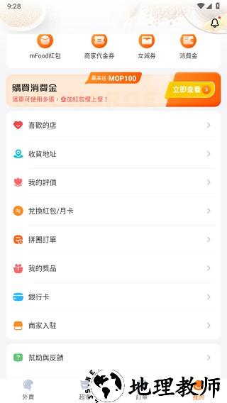 1、打开 mFood 软件,首页下方有 “独家大牌”“购买消费金”“开通月卡” 三大板块;
