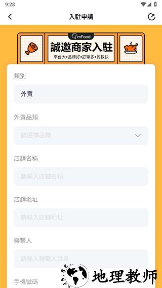 4、在弹出的商家入驻页面中,按要求填入相关信息,提交后等待平台回复即可。
