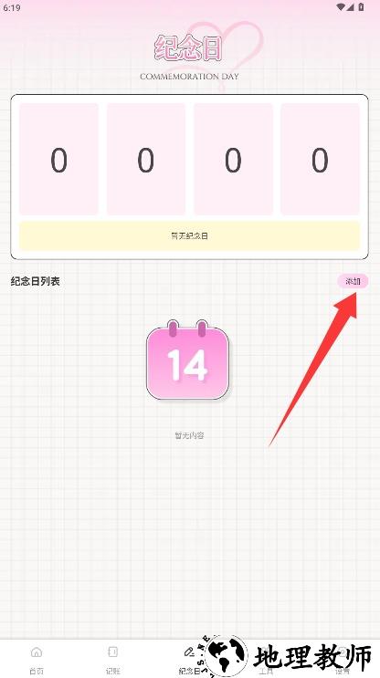 3、切换到纪念日功能界面之后,点击添加功能按钮开始创建新的纪念日事项安排。