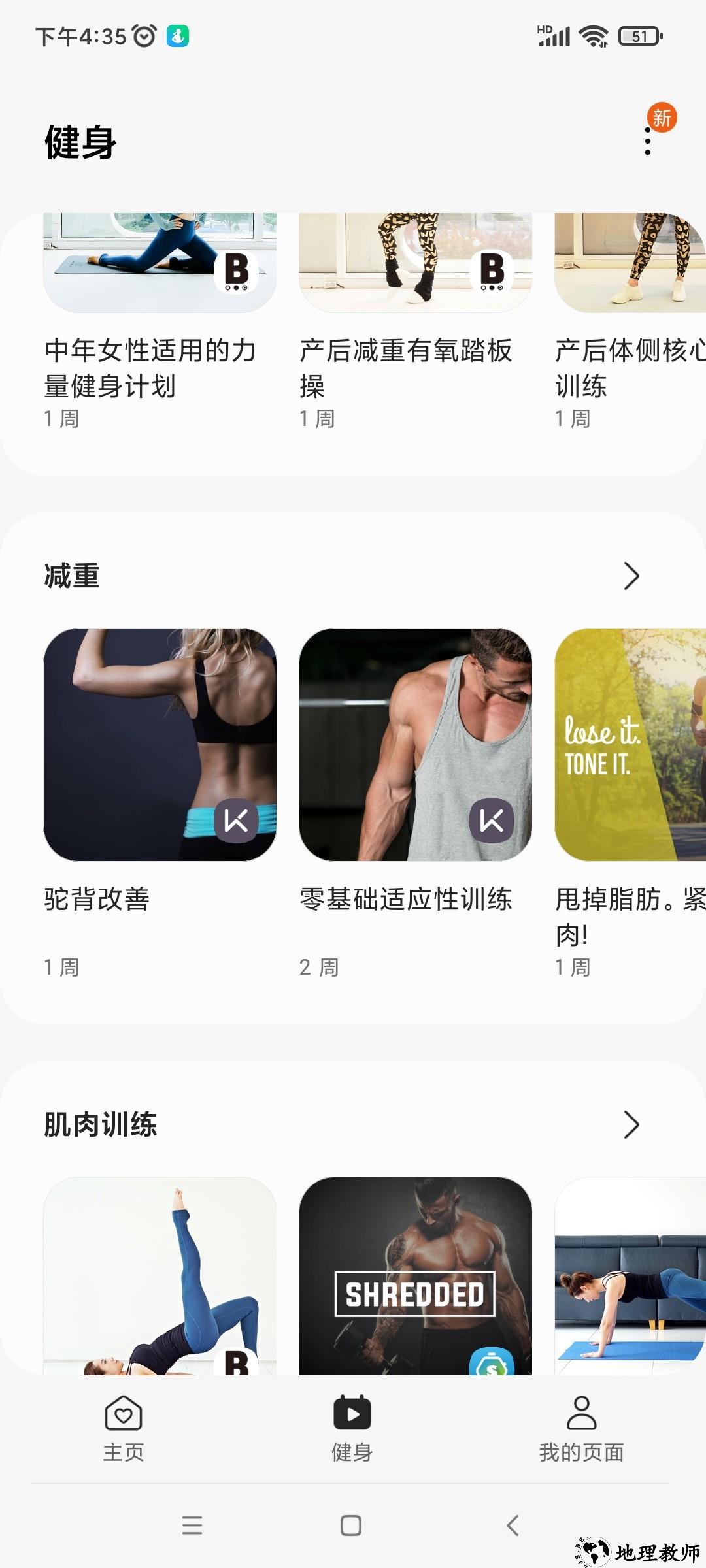 2、点开健身板块,软件会提供合适的运动项目,辅助更好地开展健身活动。