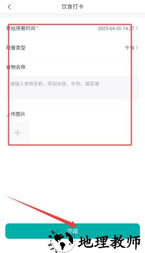 3、以饮食打卡为例,选择该选项后,按提示填写相关资料,即可完成打卡。