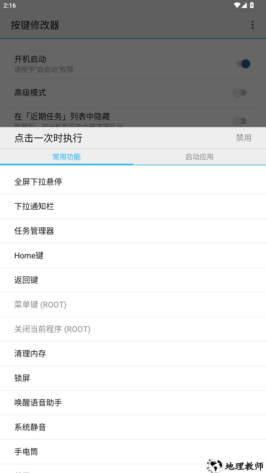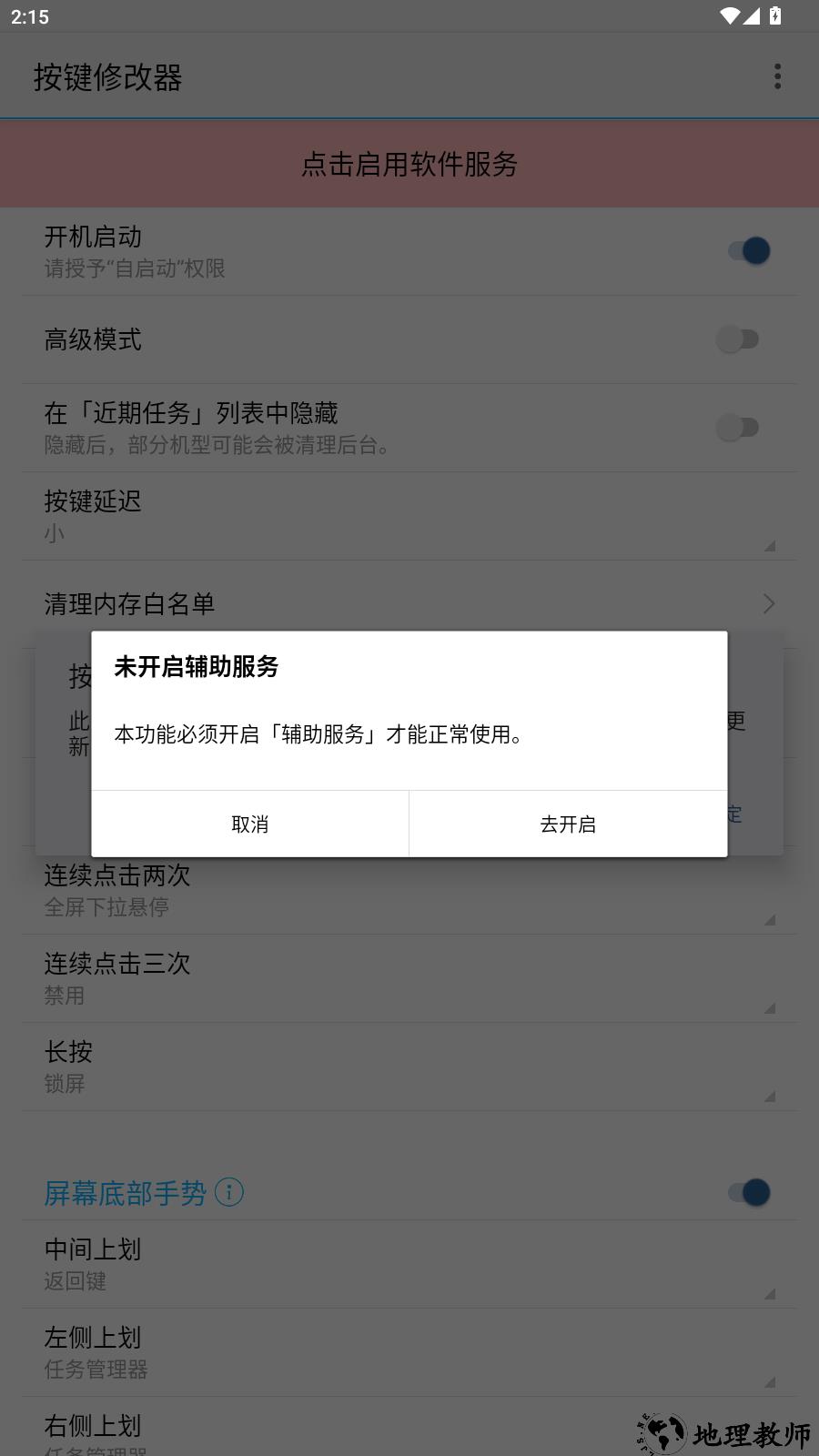 1、在地理教师下载网站下载按键修改器,打开并进入软件;初次打开会提示开启辅助功能权限,开启后即可正常启动;