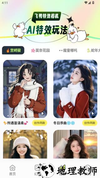 1、打开飞鸭特效相机 app,挑选喜欢的特效,点击拍摄按钮,即可生成高清照片。