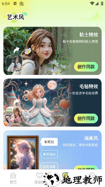 2、想要更多玩法,可进入漫画脸或艺术风专区,体验多样风格化特效。