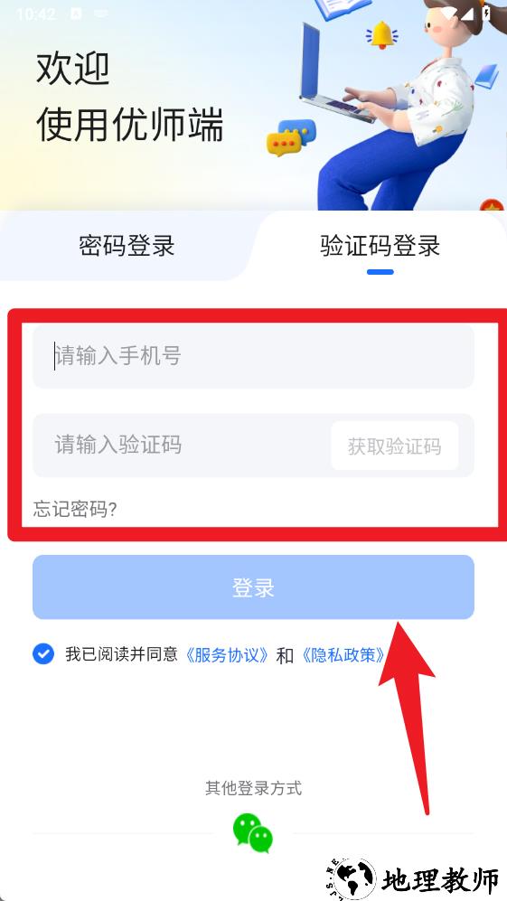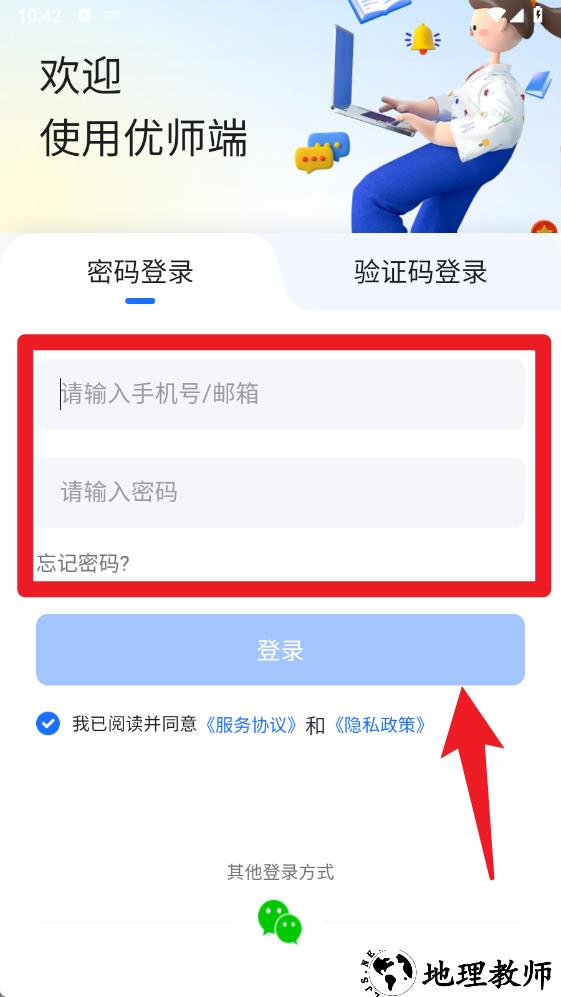 1、在登录界面,教师可通过输入手机号或邮箱与密码进行账号密码登录,保障教学数据的安全与便捷访问。