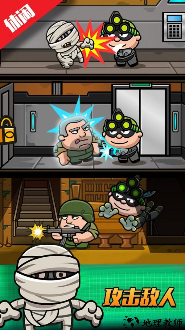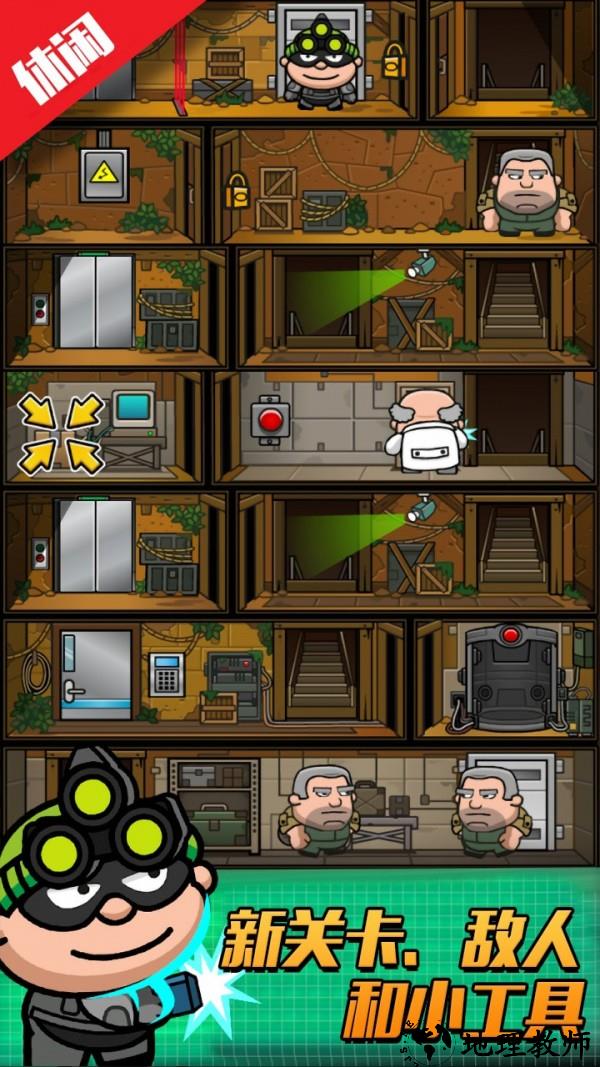 侦探大考验是个趣味性十足的冒险闯关游戏,在这款游戏中,玩家需要在每层进行探索,当你遇到敌人的时候,尽可能从后面偷袭他,因为这时候就是他们最不设防的时刻,可以快速击倒。当你无可避免与他们正面相撞时,先发制人,快速将其打倒,也可以使用工具,完成每一层的闯关。