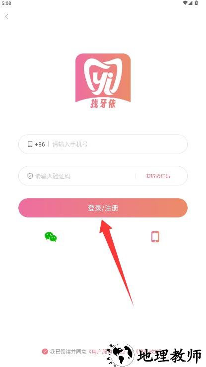 2、在登录页面输入手机号码和短信验证码,勾选同意相关条款后点击登录、注册即可。