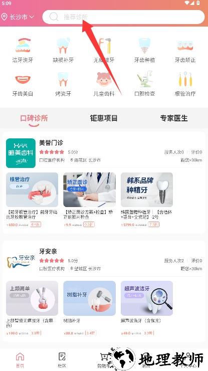 3、进入应用主界面可查看附近牙科诊所分布,或通过搜索功能查找特定机构。
