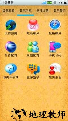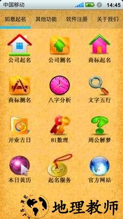 4.软件单独提供了公司测名评分;生辰八字五行分析功能;软件自动推荐法人及合伙人一起匹配开张日期;另外还提供部分择日及数字吉祥分析。