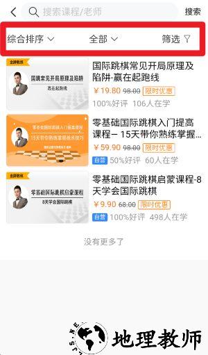 3、点选分类,在顶部搜索栏的筛选功能,可通过综合排序和课程分类快速精准查找所需课程资源。