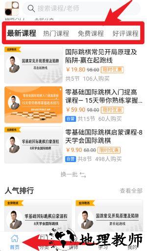 2、进入首页后,可以在最新课程、热门、免费和好评课程栏目中浏览,界面清晰,便于快速找到所需课程内容。