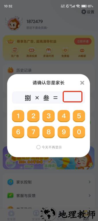 3.根据题目输入答案通过家长验证,