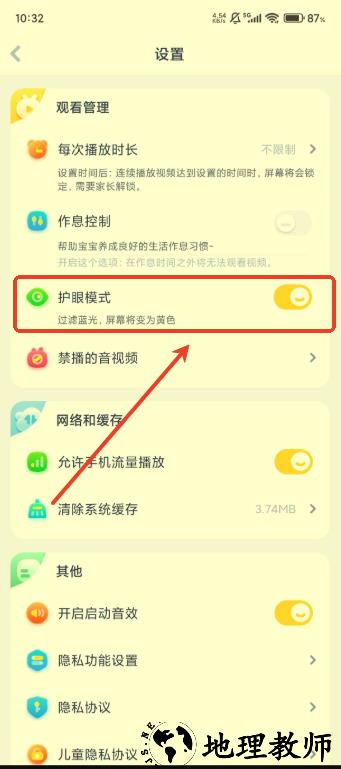 4.打开护眼模式保护宝宝们的视力。