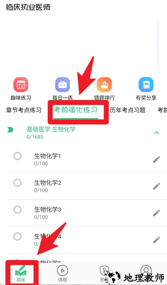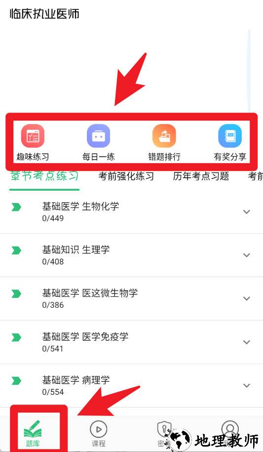 2、进入题库页面后,用户可以选择趣味练习、每日一练、错题排行和有奖分享等功能模块,提升学习的多样性。