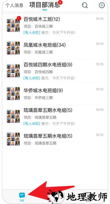 1、在消息页面中,可以随时查看来自不同项目部的通知与沟通内容、确保信息传递及时、方便快速处理工地事务。