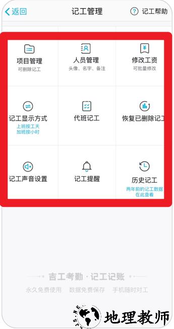 2、进入记工管理功能,可进行项目管理、人员管理,支持代班记工与恢复删除功能、让工地记录更加完整。