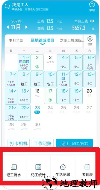 2、记工天与工时:支持按日计工与按时计工两种模式,适配不同工地管理需求。