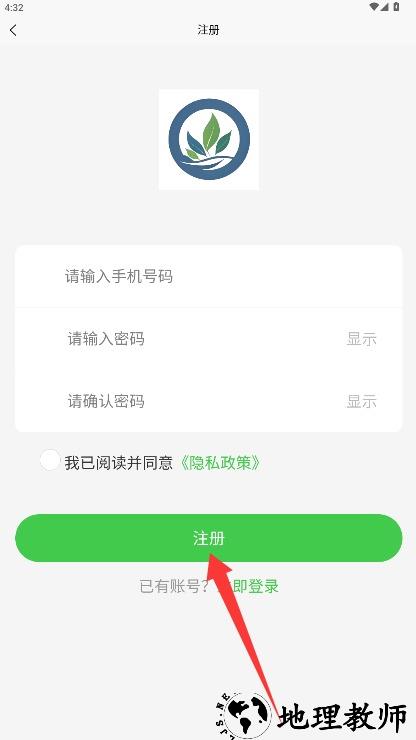1、输入手机号码,设置登录密码并勾选同意隐私政策后点击注册按钮完成创建。