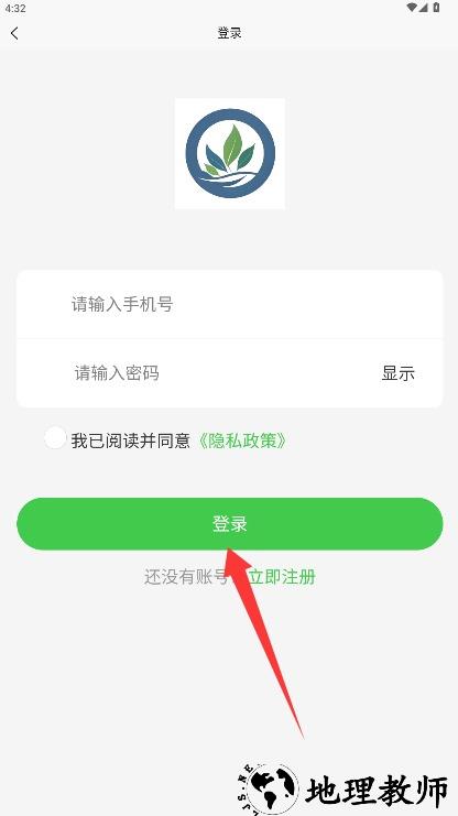 2、在登录页面输入手机号和登录密码,勾选同意隐私政策后点击登录进入应用。
