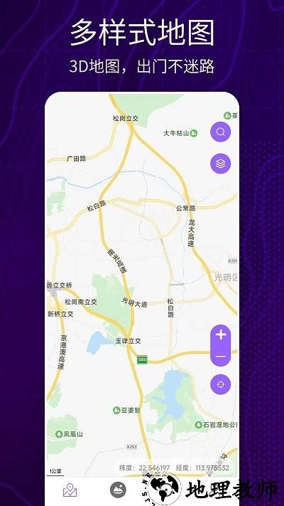 2、多种地图:高清地图,卫星地图,为您展现更花样的美景;