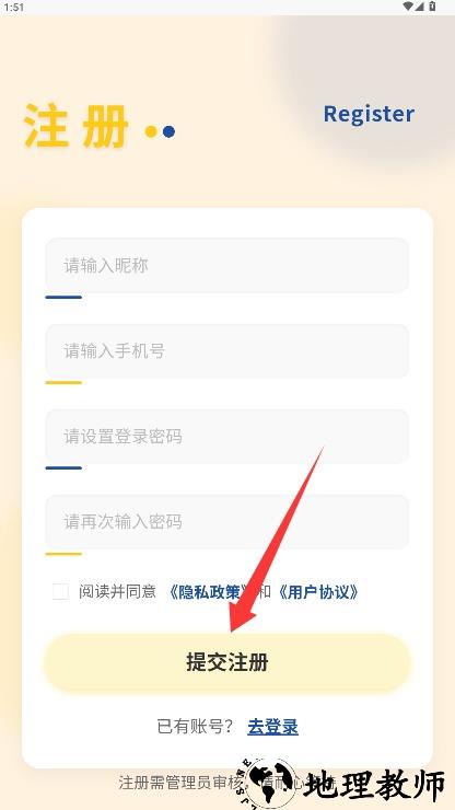 3、按要求填写呢称和手机号,设置登录密码并勾选同意协议后点击提交注册。