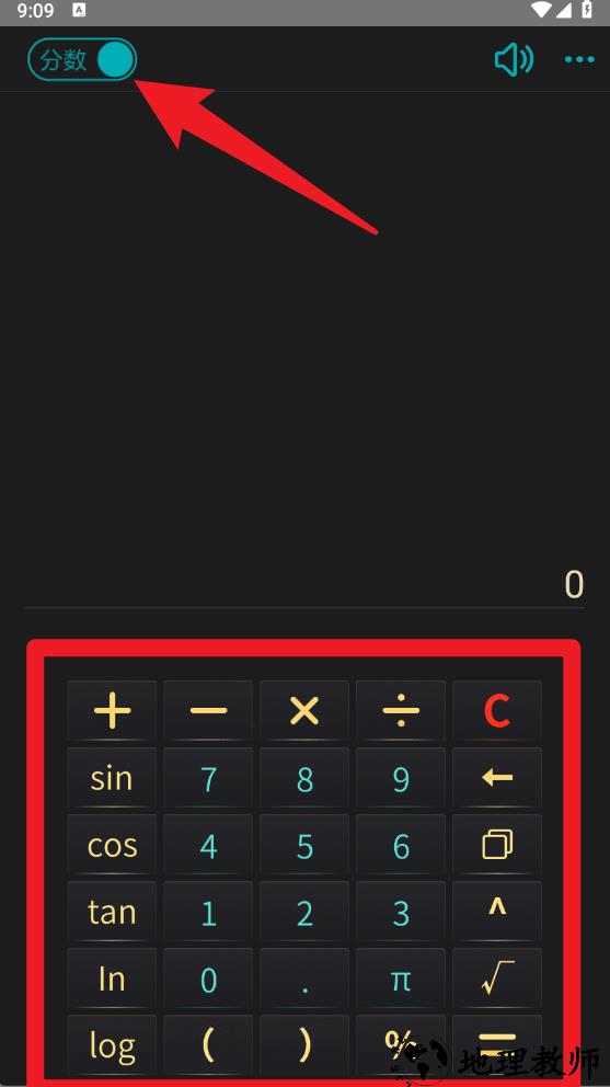 1、在主界面切换到分数模式,用户可以进行带分数的加减乘除和高级计算,界面下方的功能键区支持多样化运算。