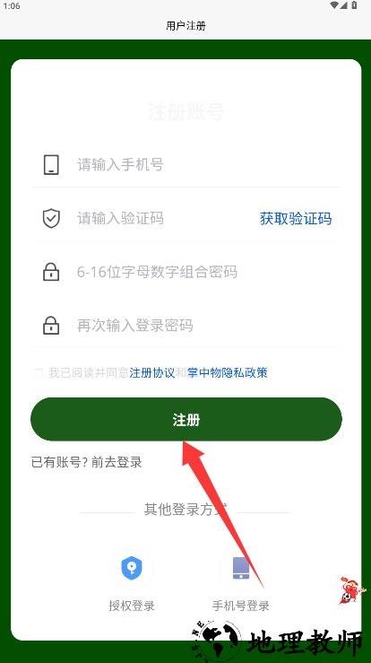 1、输入手机号和验证码,设置密码并同意相关协议后点击注册完成账号创建。