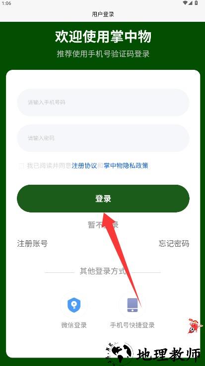 2、在登录页面输入手机号和登录密码,勾选同意相关条款后点击登录进入首页。