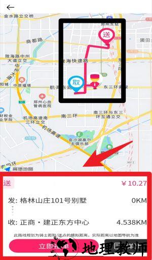 3、订单地图界面直观显示取货与送货点位,用户可查看路线规划,点击立即接单即可快速抢单并进入配送流程。