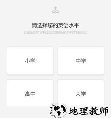 1、打开干词,进入软件后,先选择自身对应的英语水平。
