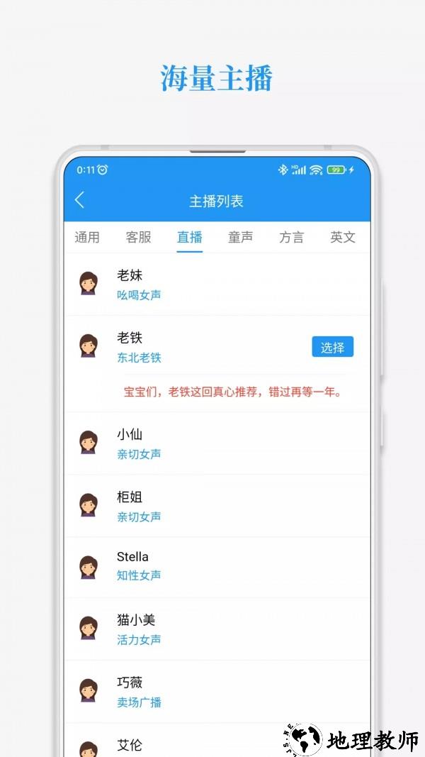 1、平台的录音都是真人声音,有很多的声音可以让你自由选择,一键导出很方便。