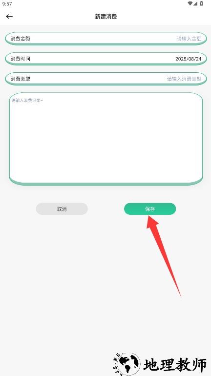 4、填写消费金额、时间及类型等详细信息,确认无误后点击保存即可完成记账。