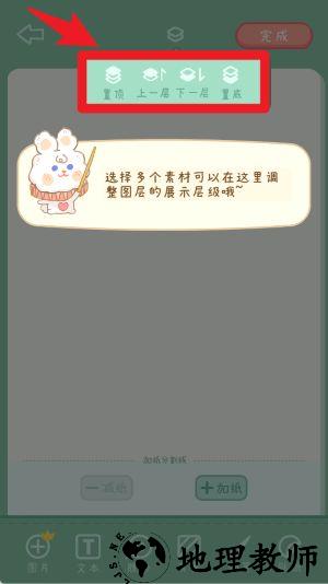3、在编辑页面点击顶部图层图标,可以灵活调整所选素材的层级顺序,支持置顶、置底、上移或下移等操作。