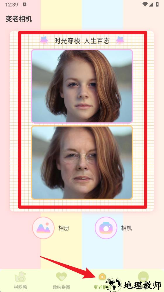 4、变老相机功能支持人脸特效处理,用户可以预览年轻与变老后的对比效果,趣味性十足。