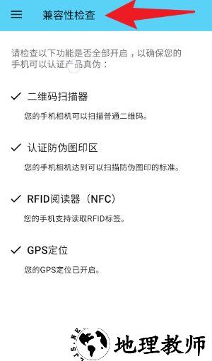 3、在兼容性检查页可查看摄像头、Nfc、Gps等权限是否启用,以确保设备可以识别全部防伪特征。