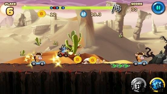 这个蓝色的狗狗看不出来还是一个专业的赛车手,接下来你就要和他驾驶赛车完成一系列的冒险和竞速,蓝狗赛车中,你会面对非常多不同的赛道和关卡,收集一路上的金币,解锁更多炫酷的车型,击败你的对手,逼真爽快的驾驶手感绝对让你欲罢不能。