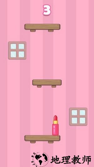 3、注意把握时机点击屏幕让口红成功跳跃到木板上;