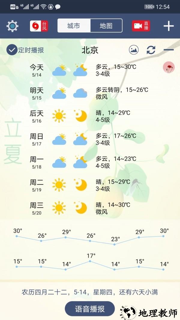 今天小编给大家带来一款非常实用的天气查询软件《农夫天气》,这款软件功能很多,软件有着语音播报系统,会自动为用户播报天气情况,还可以自己设置播报频率,此外这里还可以查询阴历、节气以及设置闹钟等多种实用功能。