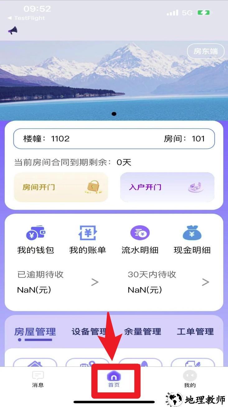 2. 登录成功后默认进入首页页面,可查看房间状态与常用功能入口。