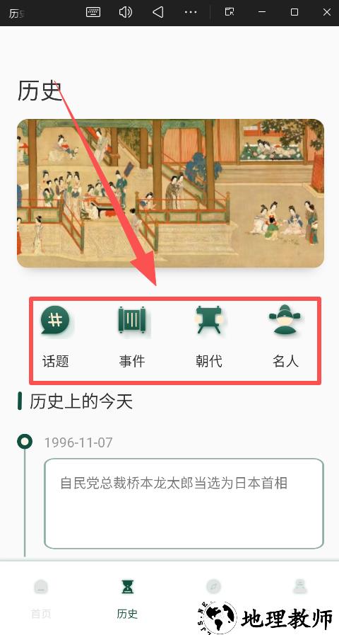 5.分类浏览:顶部有 “话题”、“事件”、“朝代”、“名人” 等分类标签。点击相应的标签,可以更系统地浏览某一类别的历史内容。