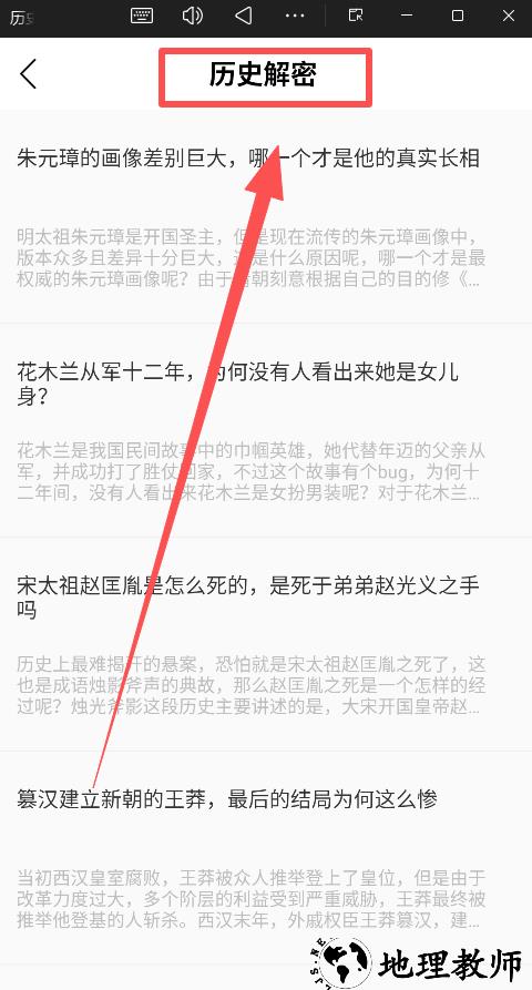 2、深度探索:如果你对某个特定历史时期、人物或事件感兴趣,直接使用 “发现” 页的细分栏目或 “历史” 页的分类标签,进行精准查找和系统性的阅读。