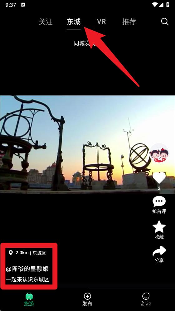 4、点击顶部的同城分类,可以快速浏览同城或周边地区的旅游视频,方便获取本地化的旅行资讯。