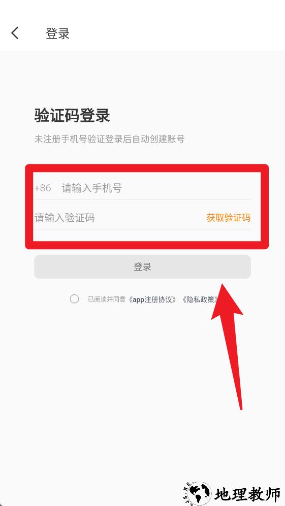 1、首次使用任旅世界时,请在登录页面输入手机号码并获取验证码,输入后勾选协议即可完成快捷登录操作。