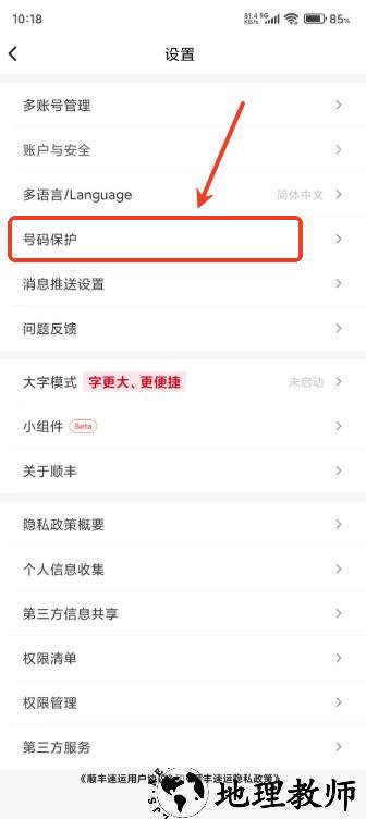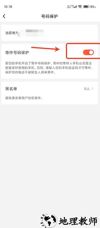 4.点击开启即可保护好自己的号码需要验证才可以被他人使用寄件。
