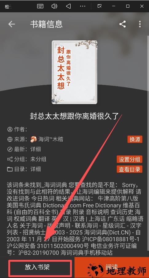 1、在搜索界面输入书名(如“封总太太想跟你离婚很久了”)